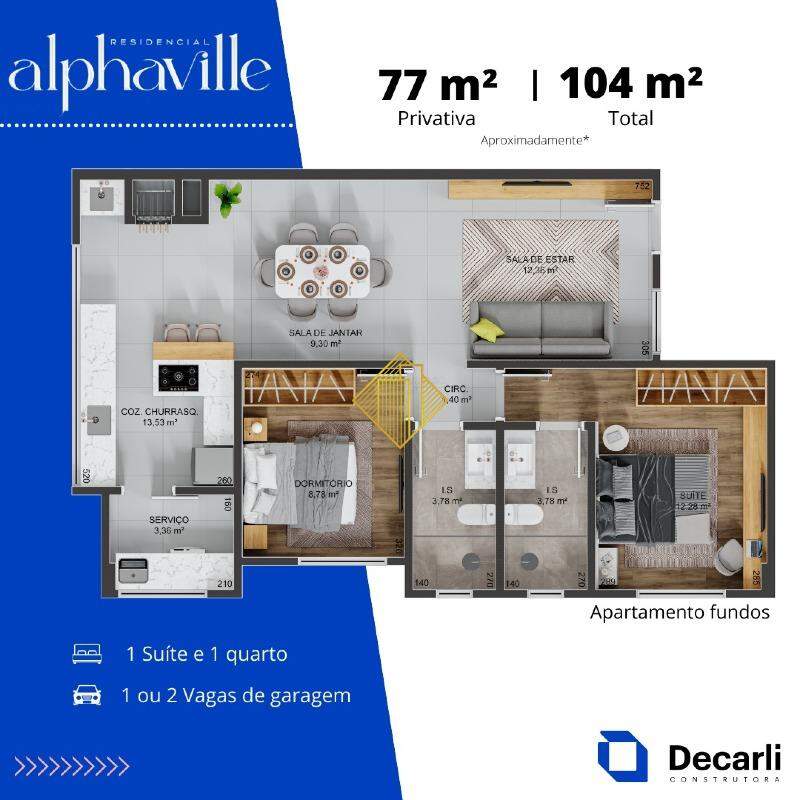 77,00 m² - Área Privativa