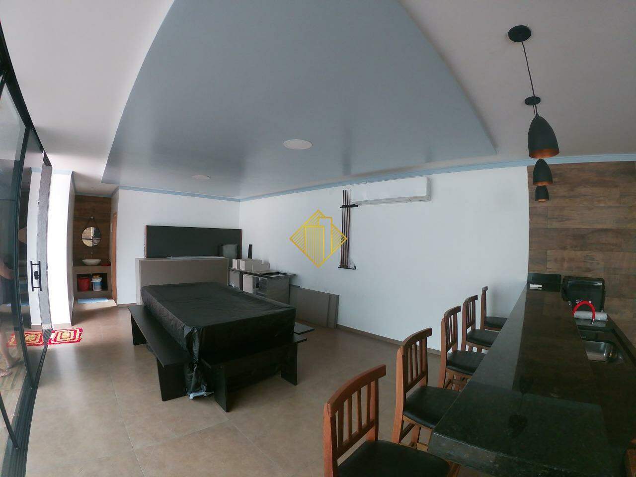 - Amplo balcão com banquetas