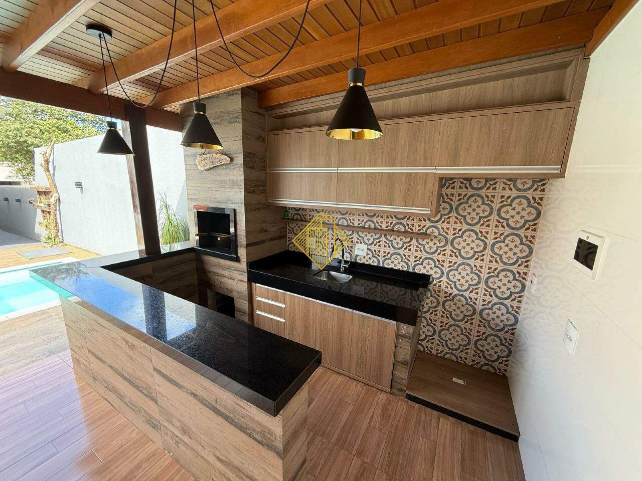 Área de festa com cozinha planejada